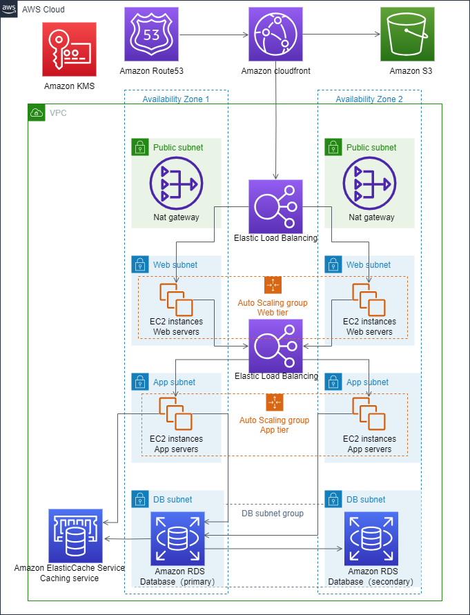 使用(yòng)的AWS雲服務(wù)包括Amazon EC2、Amazon S3、Amazon VPC、Amazon Nat Gateway、Amazon ELB、Amazon RDS for MariaDB,Amazon ElastiCache for Redis、AWS KMS、Amazon CloudFront、Amazon Route53等服務(wù)。